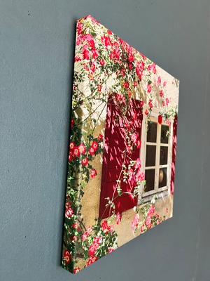 プロヴァンスの小さな街、ルールマラン。散歩の帰り、気になるあの小径を発見。「迷わず行けよ。行けばわかるさ」という言葉がふと浮かんで、先に進んで出逢った赤い扉と赤い薔薇。なんというラブリーなおうちでしょう。この作品には、その時の感動や喜びが入っているような気がします!